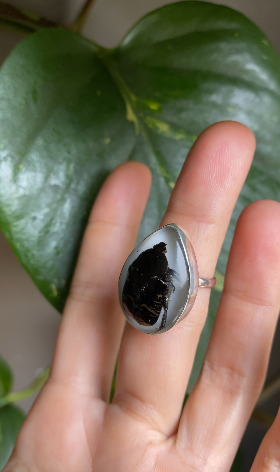 Anillo ajustable de plata .925 | vértebra de tlacuache sobre arena negra