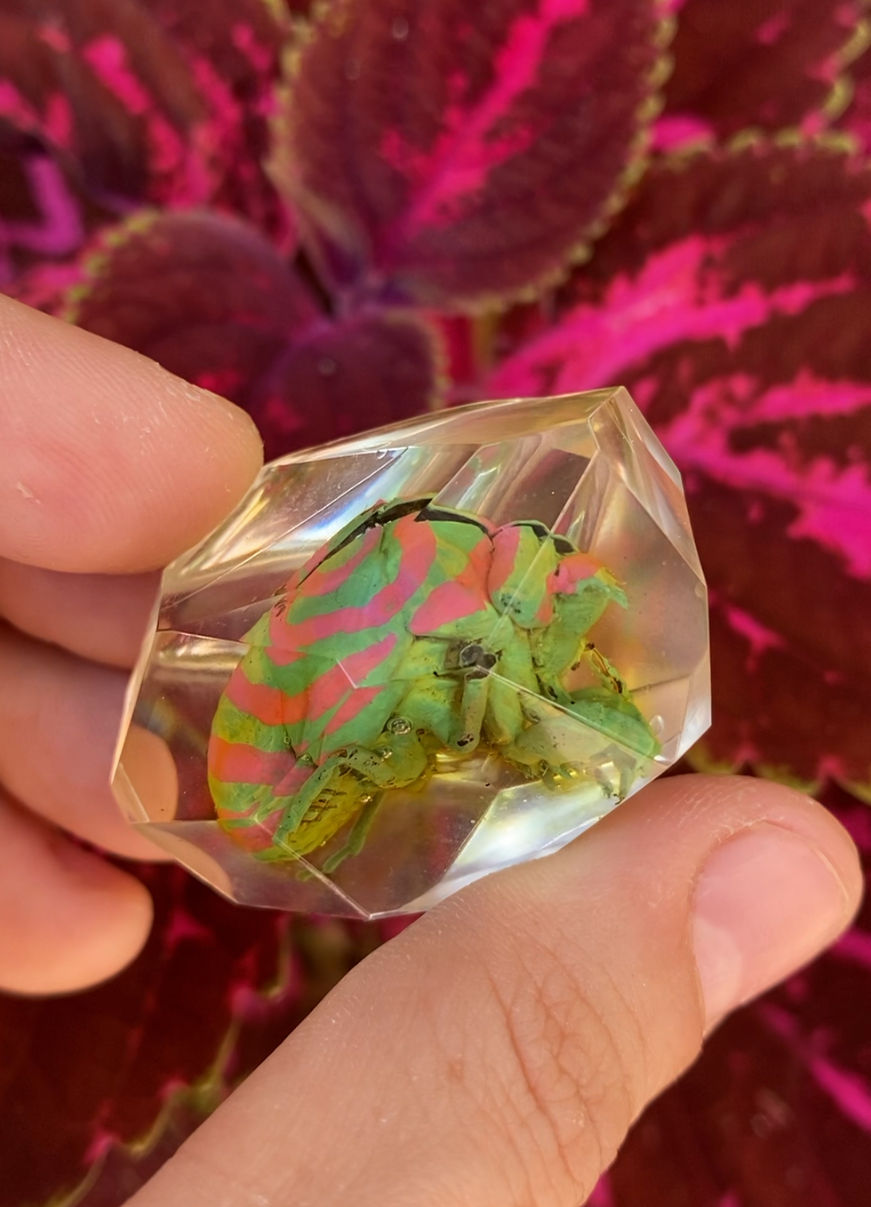 decoración cuarzo mini mayate verde | encapsulado en resina