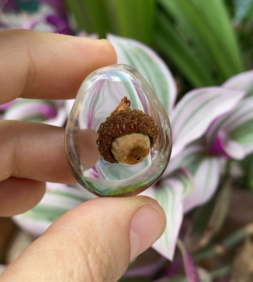 decoración piedrita de río bellota del bosque | encapsulado en resina